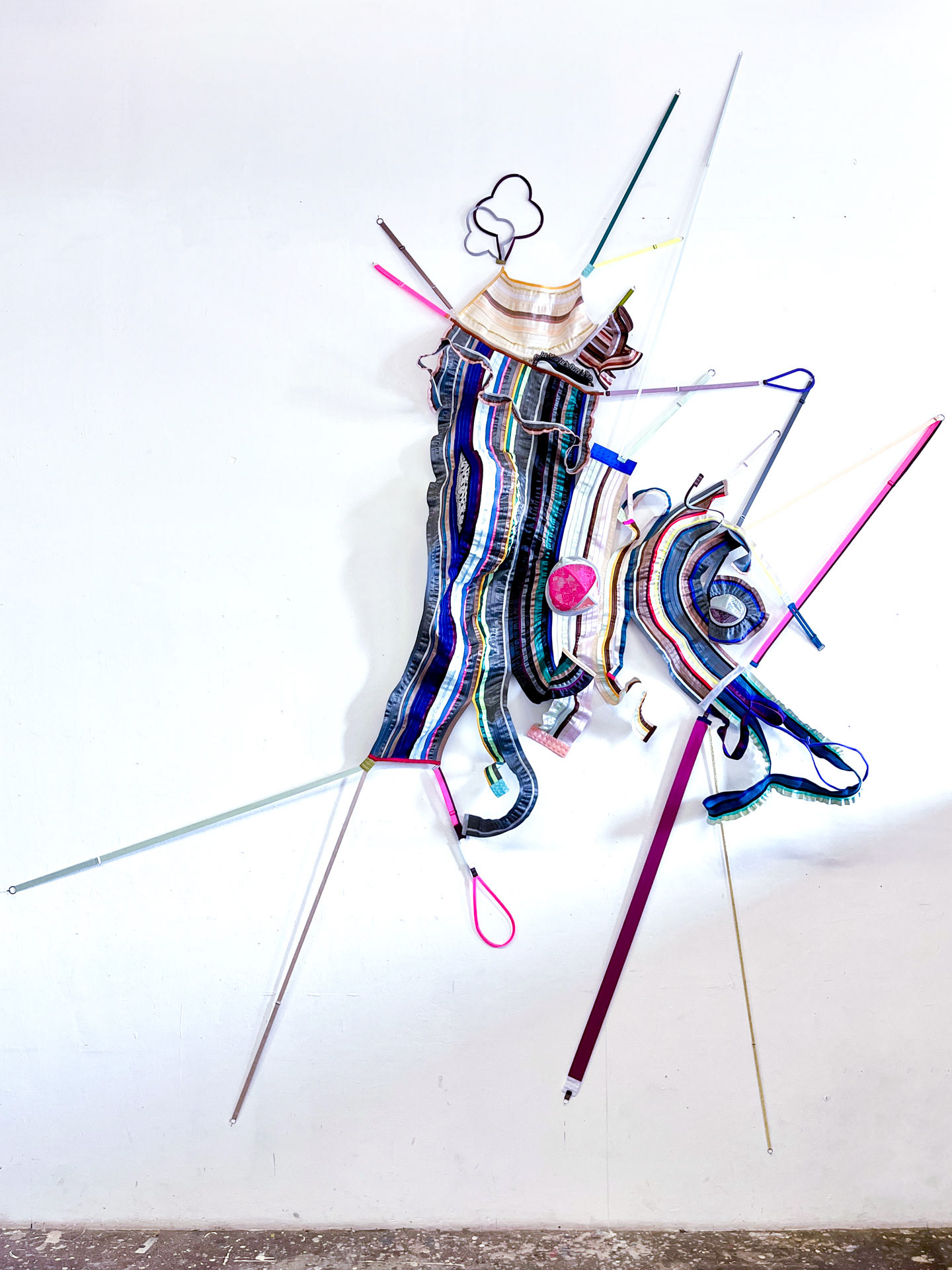 Bra strap elastic, embroidered tulle, lace, hook and eye closures, rings and sliders, wires, channeling, zippers, boning