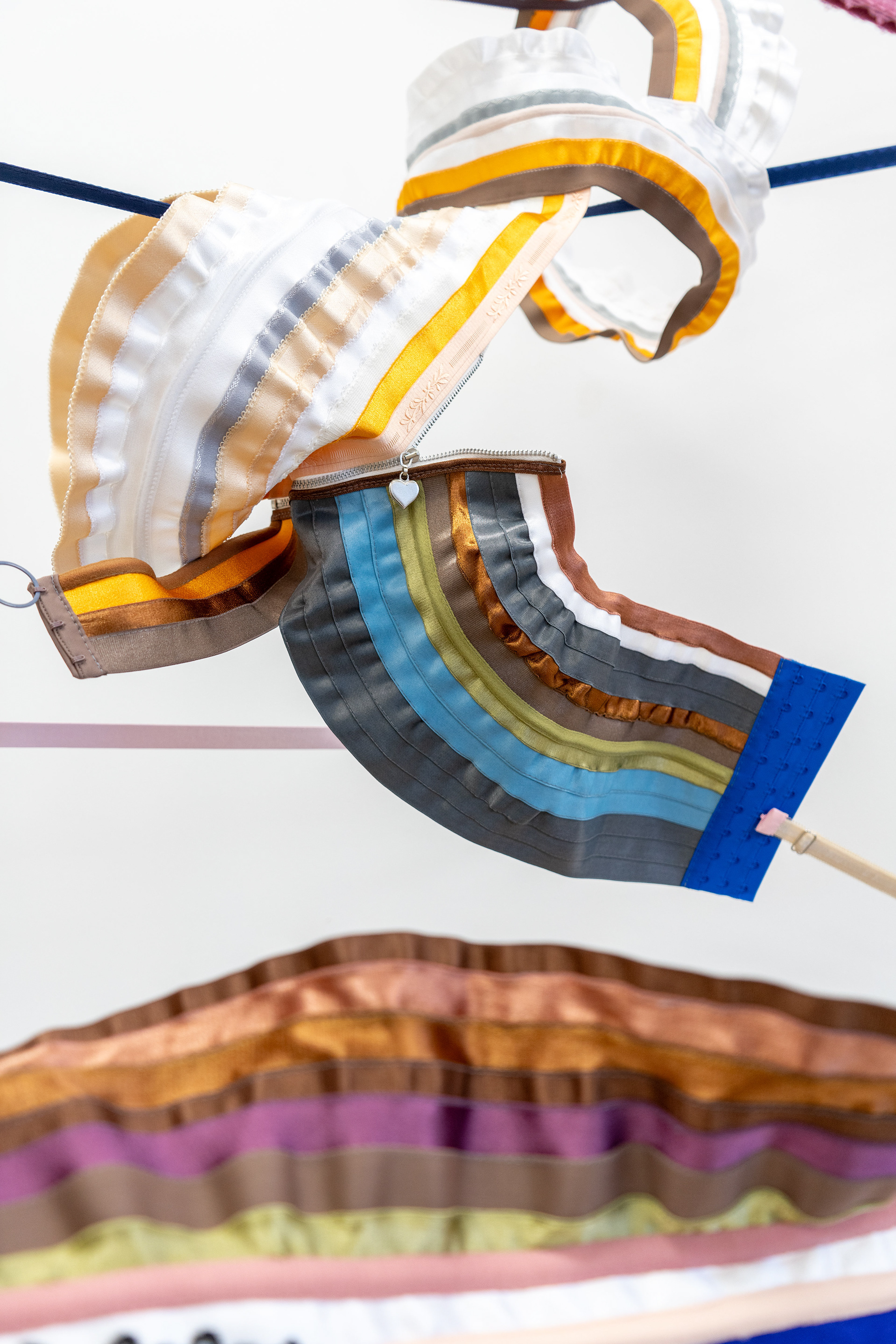 Lace, strap elastic, wire, hook and eye closures, rings and sliders